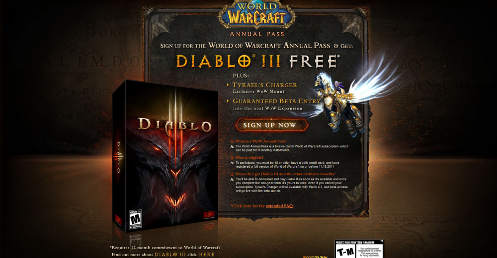 Blizzard vient de mettre en ligne une Foire Aux Questions concernant l’offre, celle-ci se trouve à cette adresse: Offre 1 an pour World of WarCraft : F.A.Q. Quelques éléments importants ayant retenu mon intention: