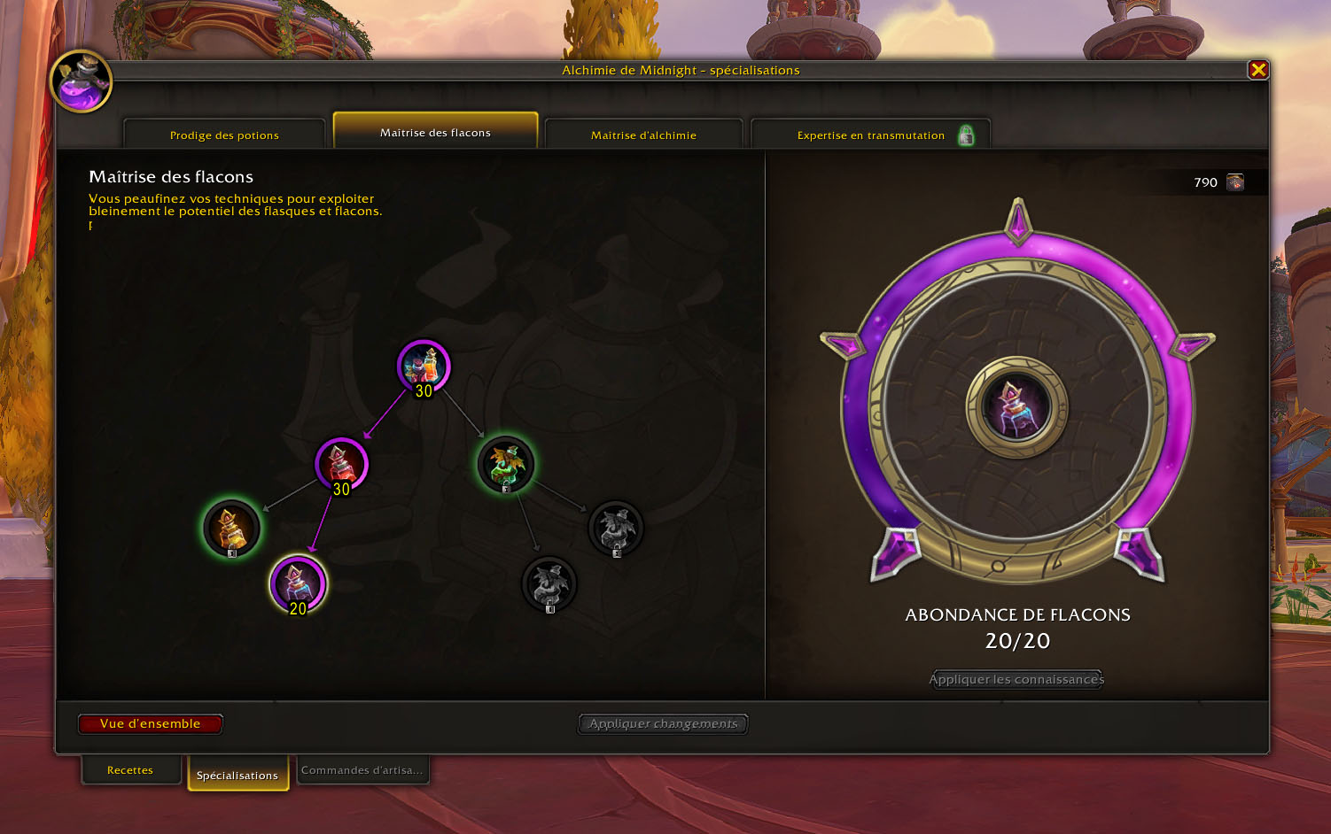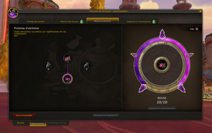 - 10 points dans Maîtrise des flacons pour débloquer Spécialiste sin’dorei