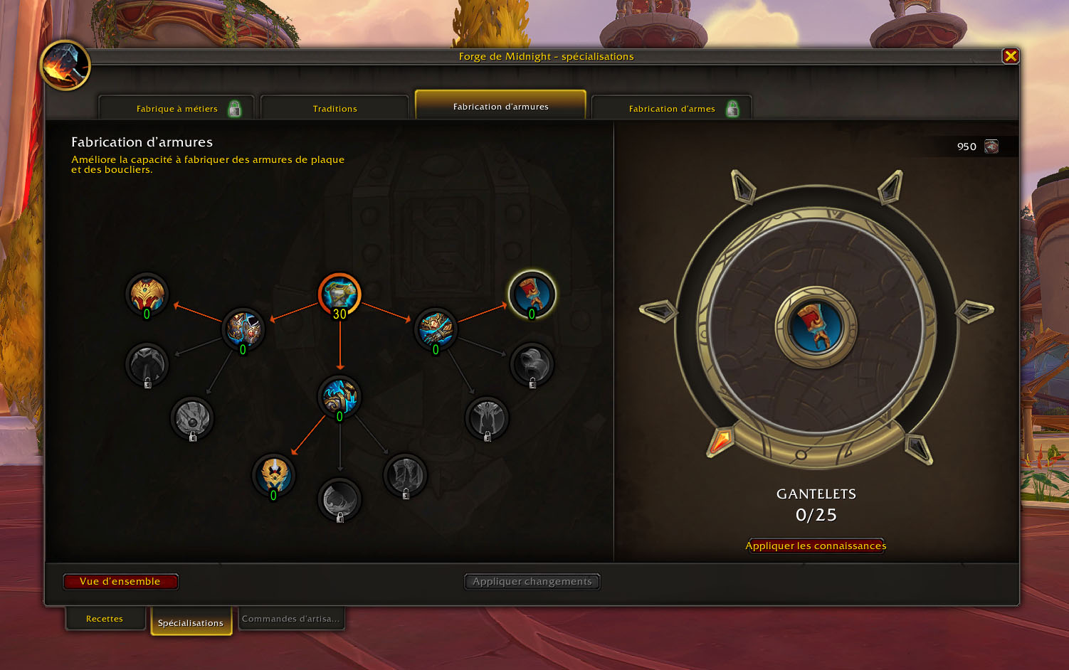 Forge de Midnight : build de départ des spécialisations