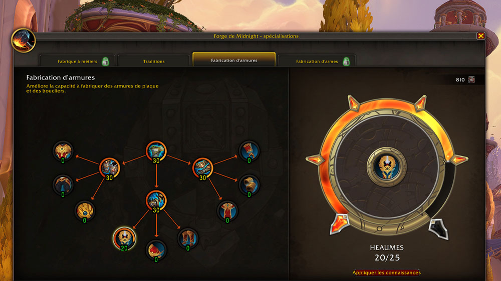 - 30 points dans Fabrication d’armures pour débloquer 3 recettes.