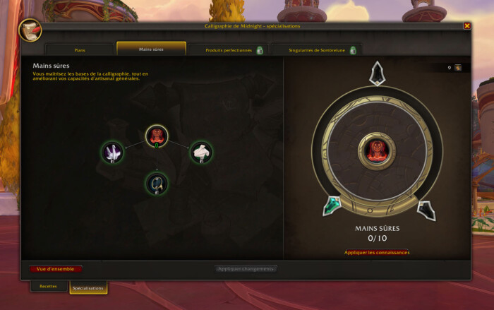 Dans Midnight, vous améliorez la calligraphie grâce à un système de spécialisations, sur le même modèle que Dragonflight et The War Within. Chaque extension ayant ses propres arbres, vos spécialisations des extensions précédentes ne s’appliquent pas à Midnight.
