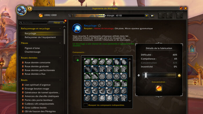 - Améliore votre Fabrication multiple, votre Ingéniosité et votre Concentration pour toutes les recettes d’ingénierie.