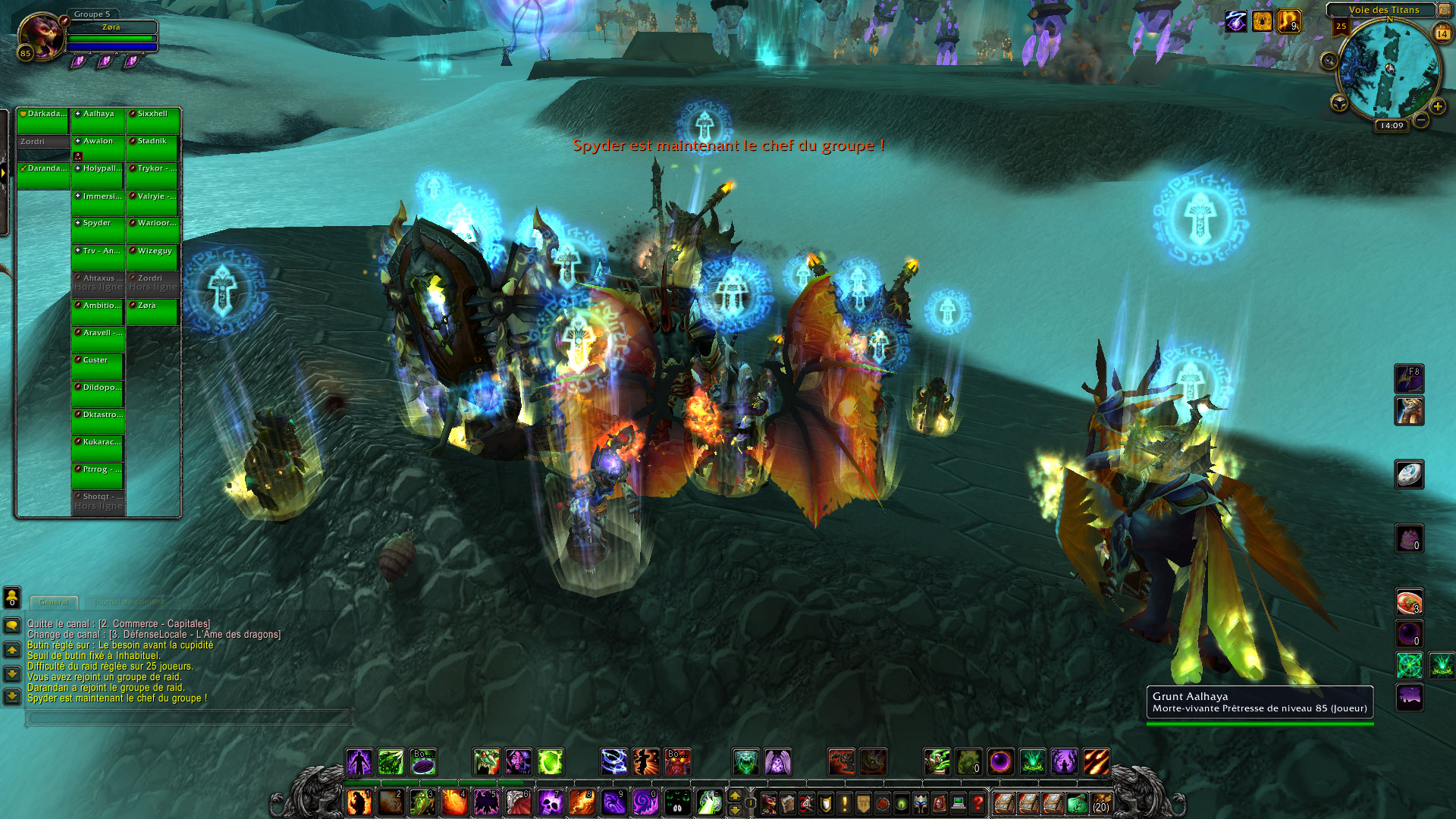 Ma fois, c’est assez sympathique tout compte fait, c’est vraiment une méga instance à 25, on peut s’exciter au DPS on ne risque pas grand-chose. Les stratégies des 3 premiers boss sont simplissime et permettra aux plus mal équipé de récupérer de l’équipement assez facilement. Niveau temps, 35 minutes montre en main, trashs compris pour tomber les 3 premiers boss.