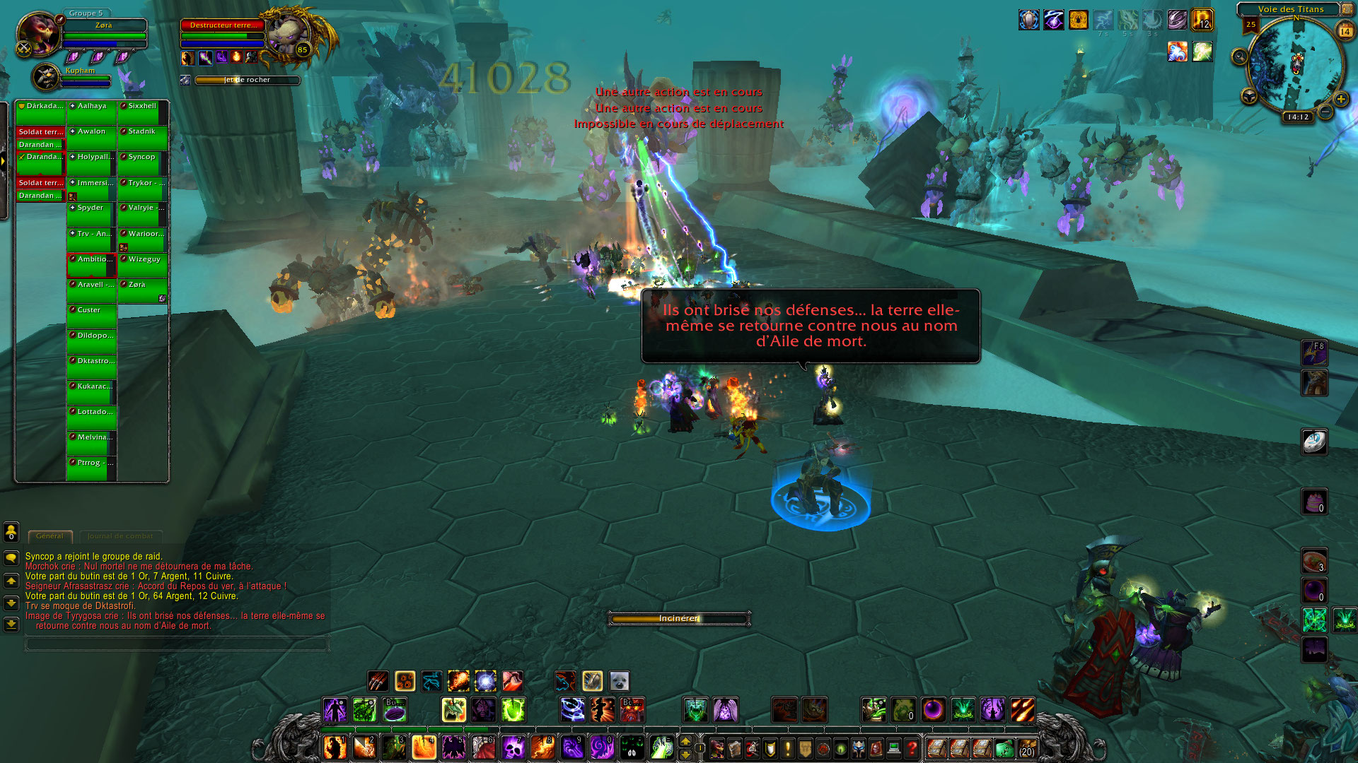 Les trashs sont une farce, il n’est vraiment pas compliqué d’en venir à bout, je n’ai pas remarqué de stratégie particulière à adopter si ce n’est de tout DPS façon bourrin. Le premier Boss Morchok est pull à l’arrache sans aucun appel ni rappel de stratégie au préalable. Et je comprends mieux pourquoi maintenant, il n’y a quasiment rien à faire, ça reste du boss poteau, les dégâts sont faibles, la stratégie quasiment inexistante. C’est vraiment un donjon, version 25 joueurs.