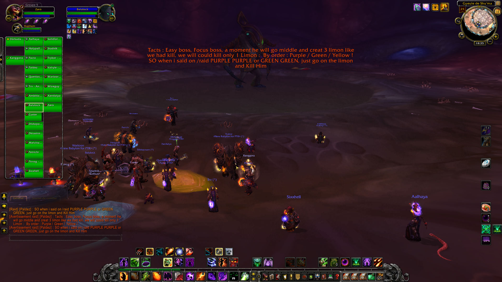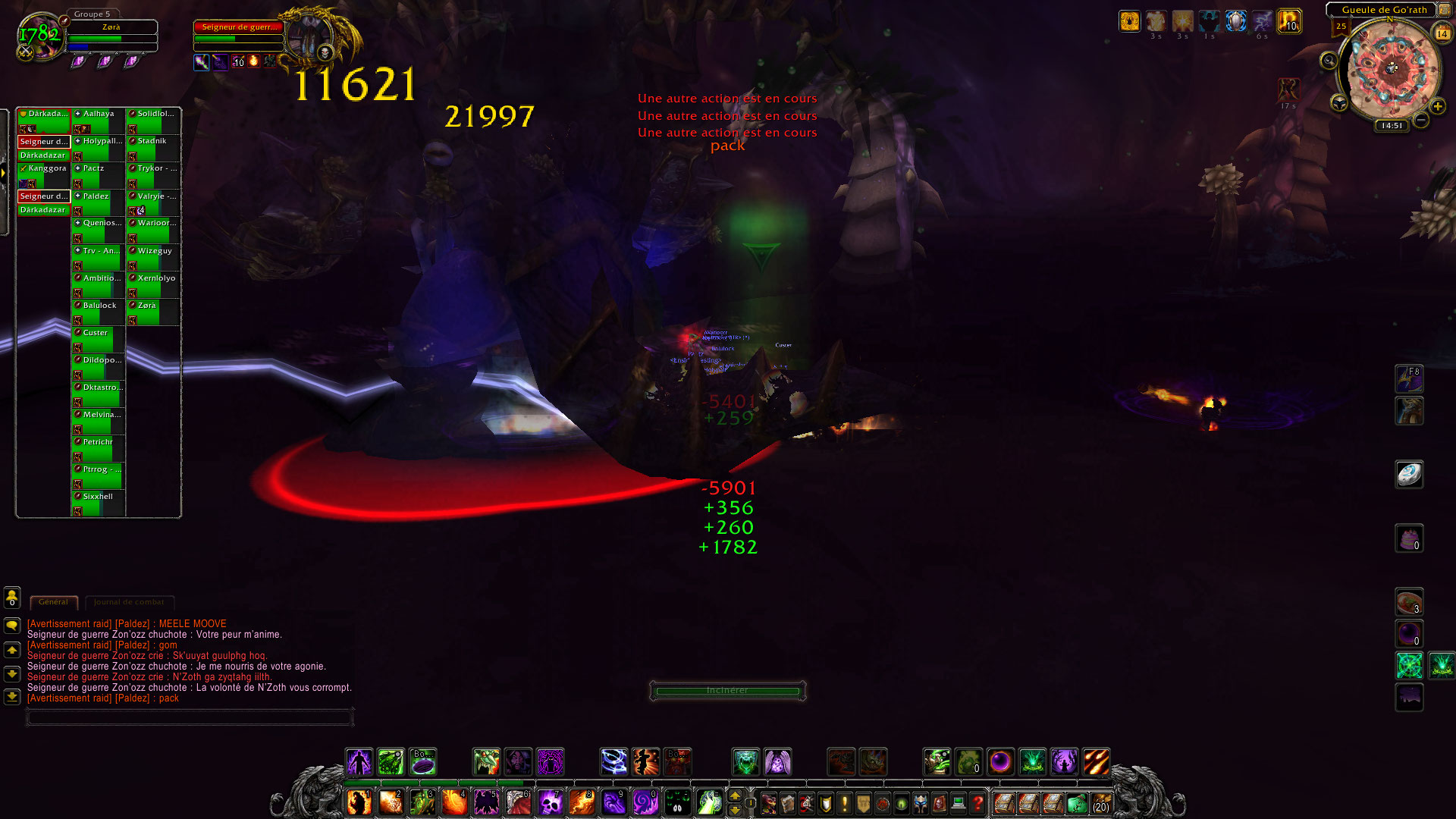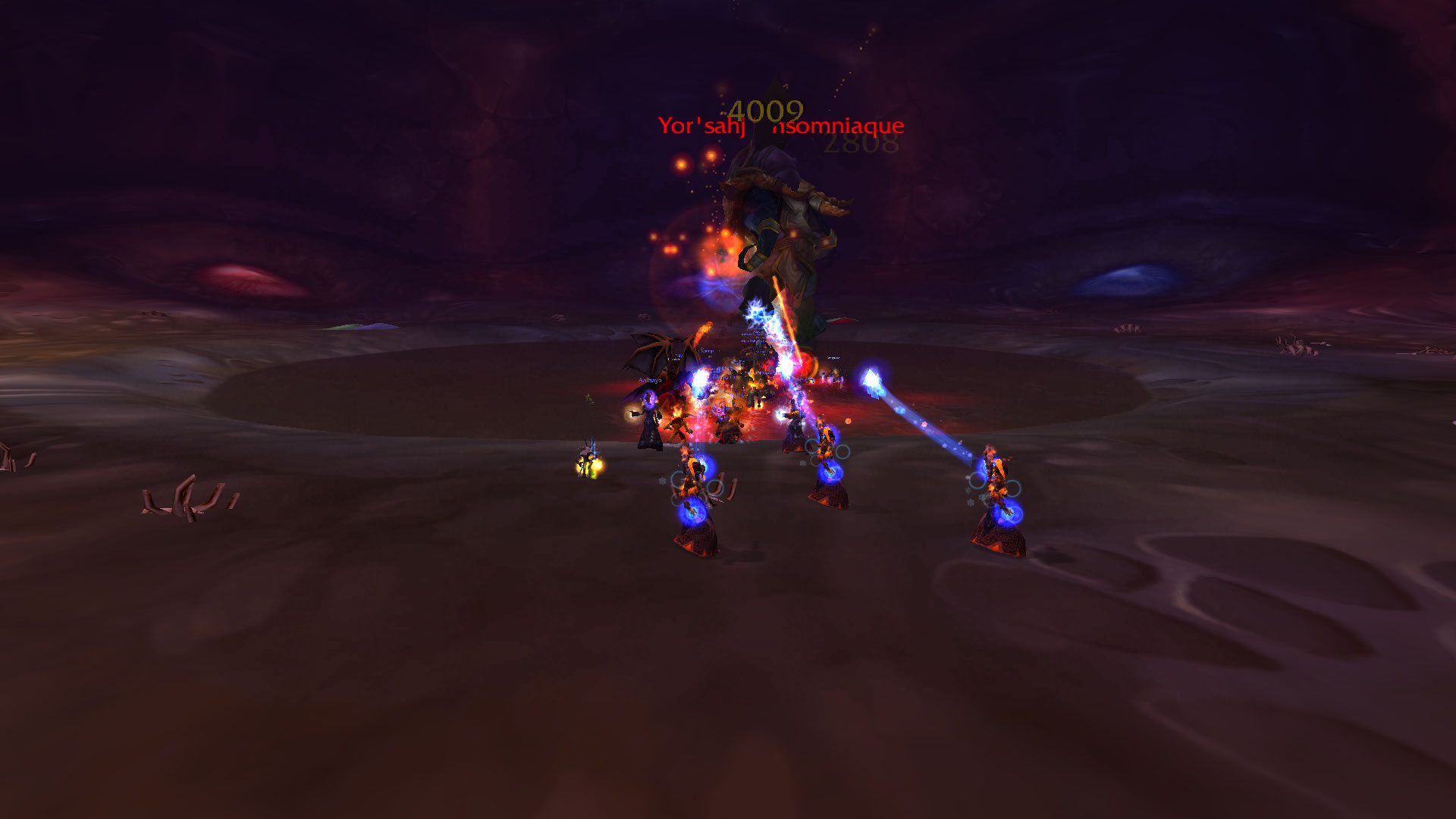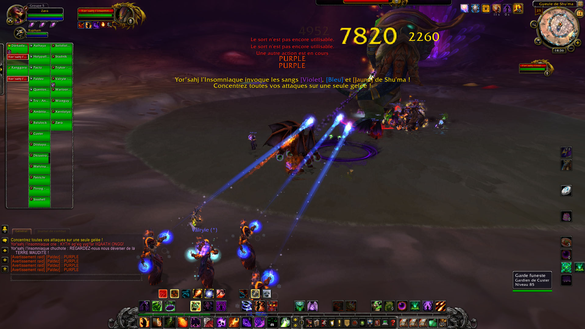Je suis bêtement le groupe sans trop savoir ce qui nous attend après, on prend des Drake puis on arrive dans la salle de Yor’sahj l’Insomniaque. Bon au premier pull des trashs, c’est le drame, un DPS à aggro un seconde pack d’adds. Wipe du raid. S’en suite d’un ballet incessant de personnes qui quittent le raid, d’autres qui arrivent, c’est affolant mais on ne le remarque quasiment pas. On raid dans l’anonymat le plus complet, il pourrait y avoir mon GM, je ne m’en rendrai même pas compte.