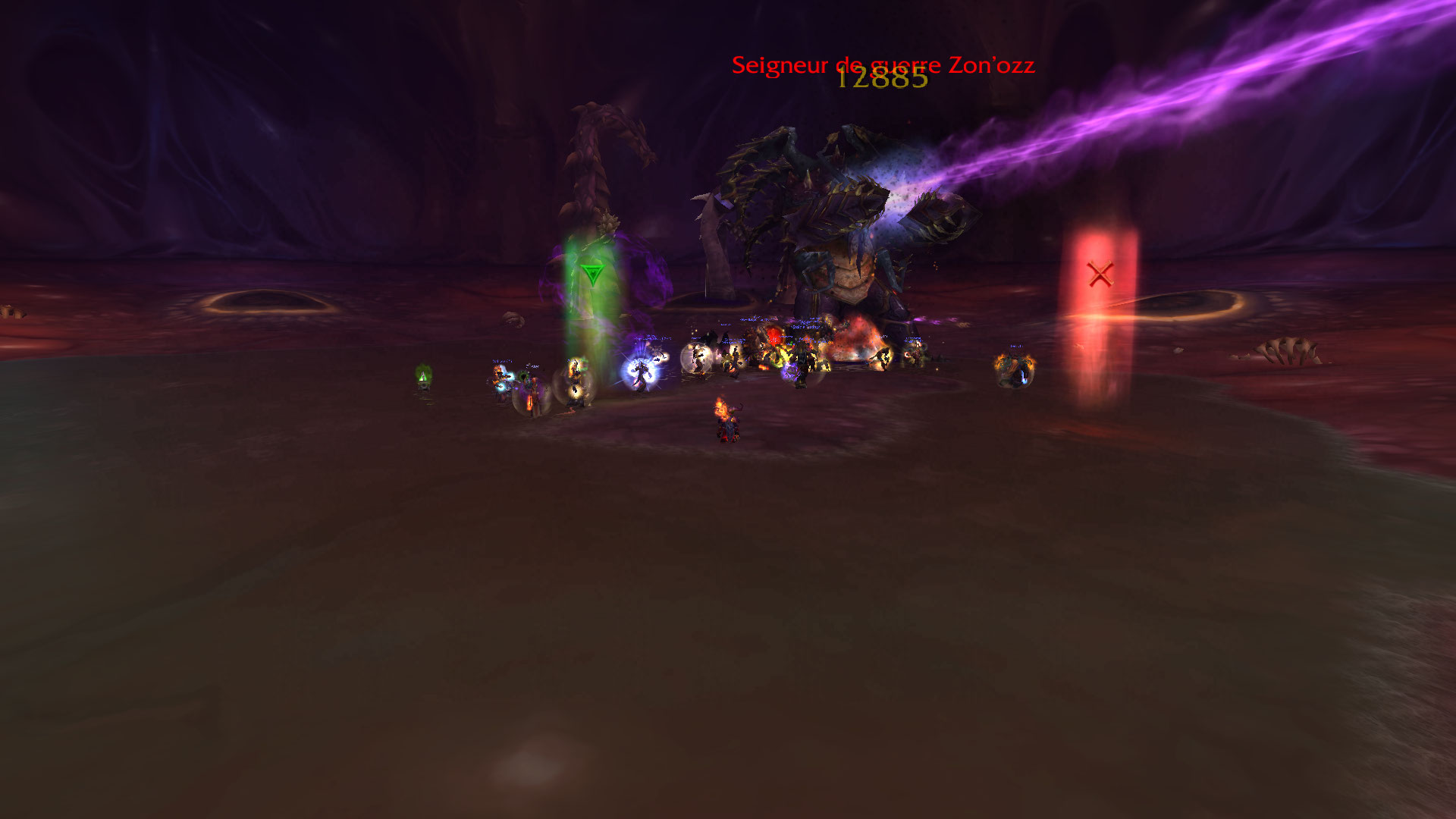 Nous nous dirigeons vers le 3e boss, le Seigneur de guerre Zon’ozz. Pas de trashs à faire, c’est cool et ça pull dans la foulée. Pour la stratégie, rien n’a été expliqué, c’est encore un boss poteau pour les DPS, il n’y a vraiment rien à faire, si ce n’est de se packer durant les phases ou ça pique. Tout le travail de ce boss est dans le tanking. Le DPS est outrageusement bas et pourtant il n’y a aucun problème pour le tomber, c’est d’une facilité déconcertante (et c’est le but.)