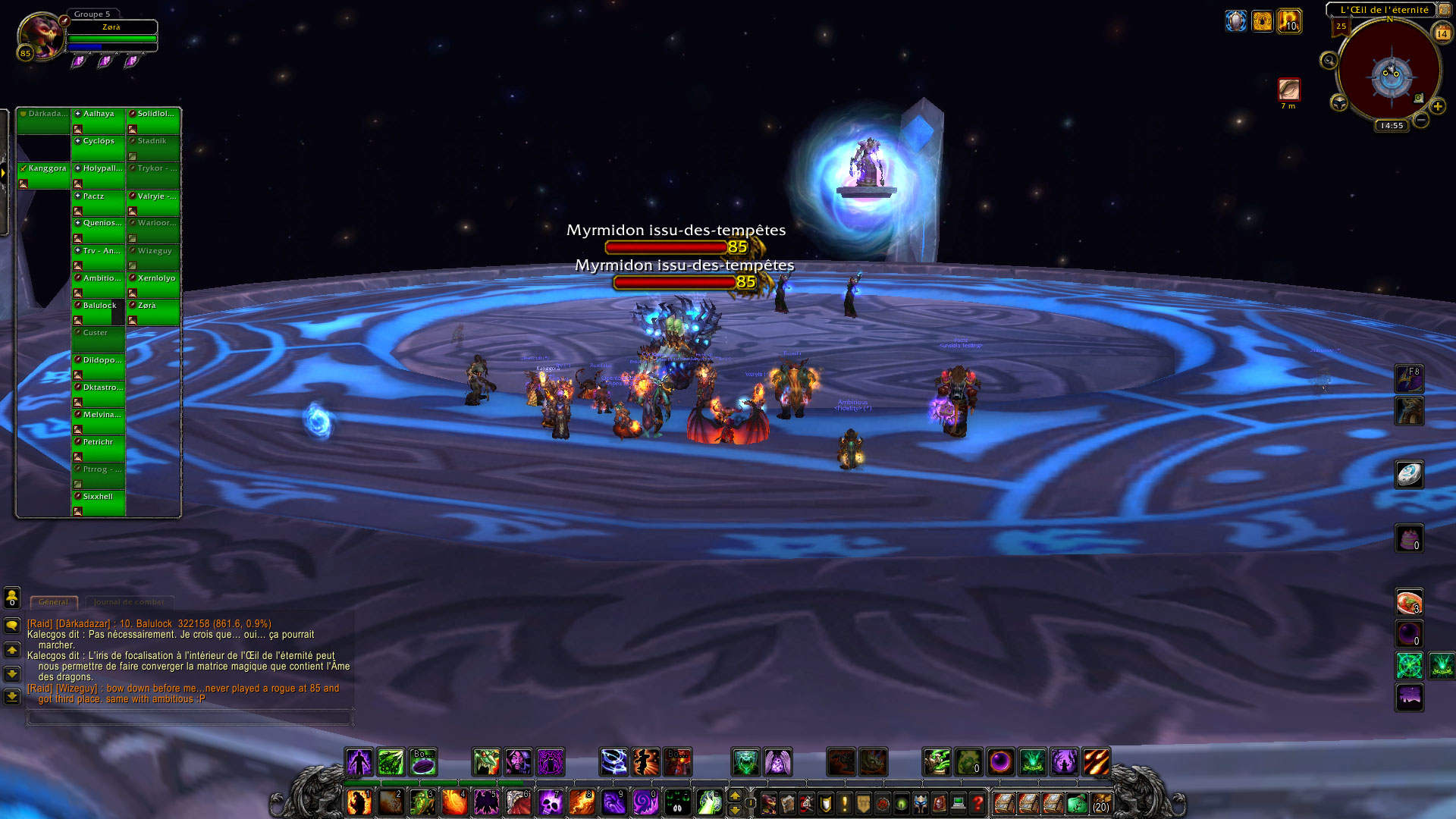 Dernier boss de la première partie du raid. Hagara la Lieuse des tempêtes, pour cela direction l’œil de l’éternité où Malygos avait déjà posé ses affaires à l’époque de Wotlk. Les adds du boss sont un peu plus casse-pieds et un nombre d’entre nous ont finis au casse-pipe. Honnêtement je n’ai pas tout compris au boss, puisque ce sont des vagues d’adds pendant 5 bonnes minutes. Hagara décide enfin de descendre de son perchoir. Il lui reste encore 70 millions de points de vie à lui siffler.