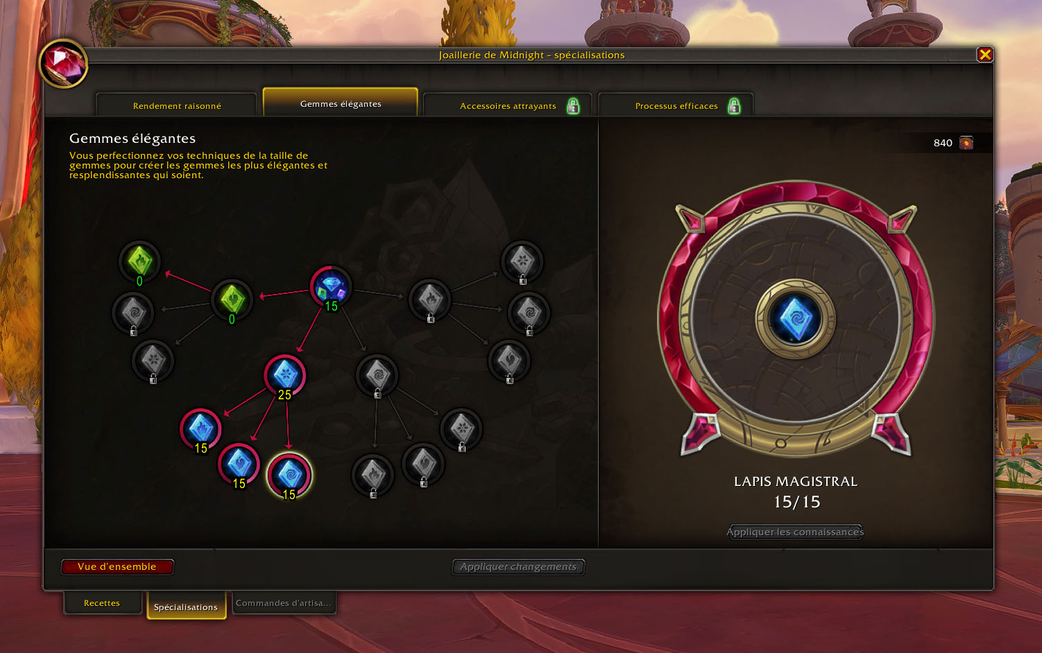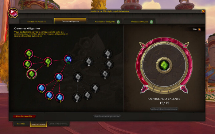 Vous ne savez toujours pas quoi faire après ? Terminez entièrement la spécialisation Gemmes élégantes, cela vous demandera 310 points de connaissance !
