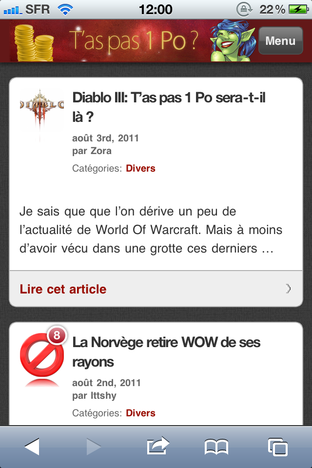 Alors pour le moment la version mobile est en phase de Bêta, je n’ai qu’un iPhone en ma possession, je n’ai pas pu tester le blog sur les autres systèmes d’exploitation, j’attends impatiemment vos retours !