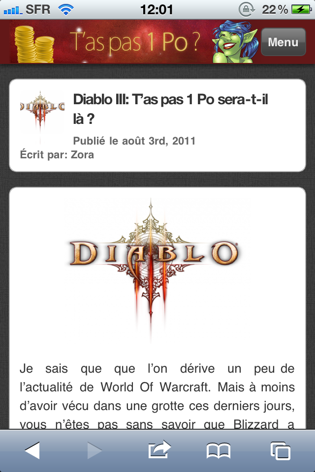 J’ai l’immense joie de vous présenter le dernier bébé du Blog: sa version mobile ! Après une période de réglage, la version mobile est enfin là.