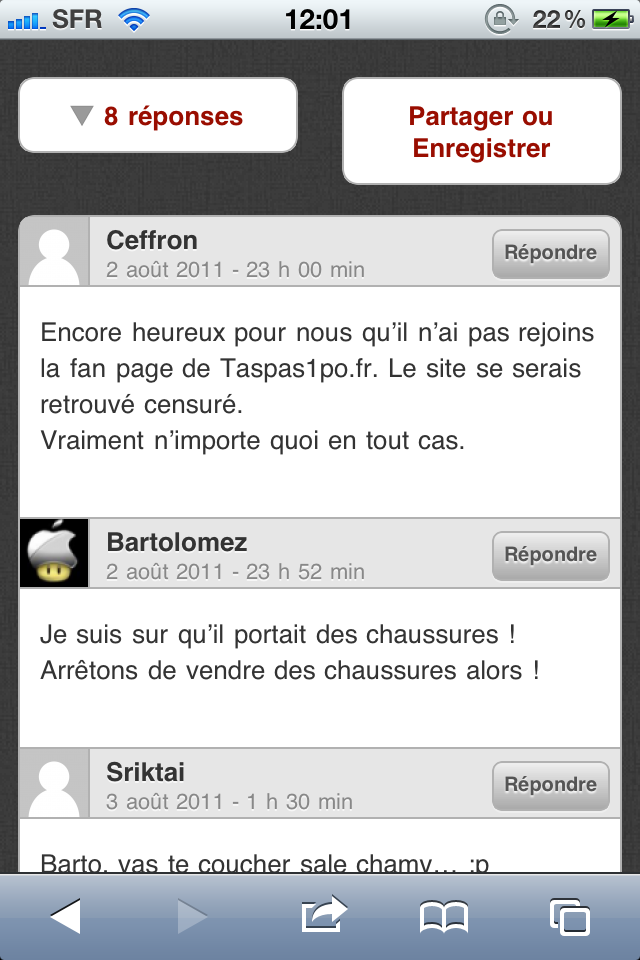 Je déclare officiellement ce post commenté depuis un iPhone ! Yay ! A nous l’interface pratique, pour regarder comfortablement le blog pendant un fly sans même avoir à alt-tabber !