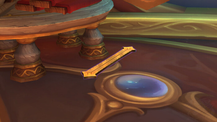| Burin à chef-d’œuvre sin’dorei | Lune-d’Argent | Au sol, au pied de la table | |