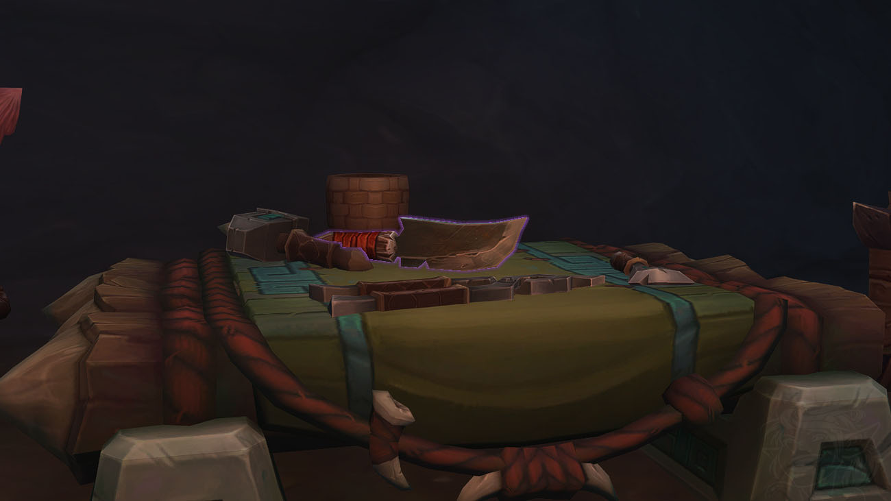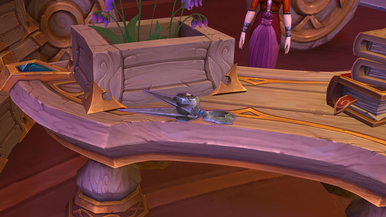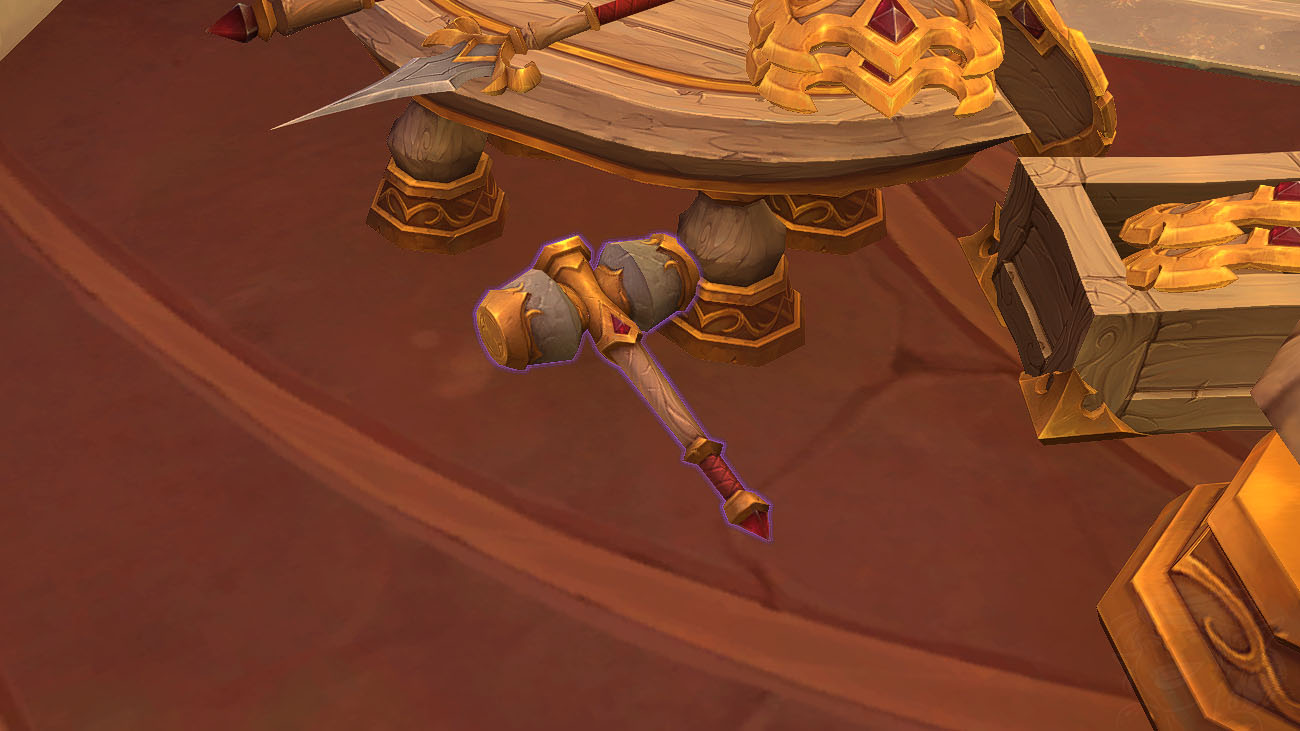 | Masse de forge de maîtrise sin’dorei | Lune-d’Argent | En intérieur, sur la table | |