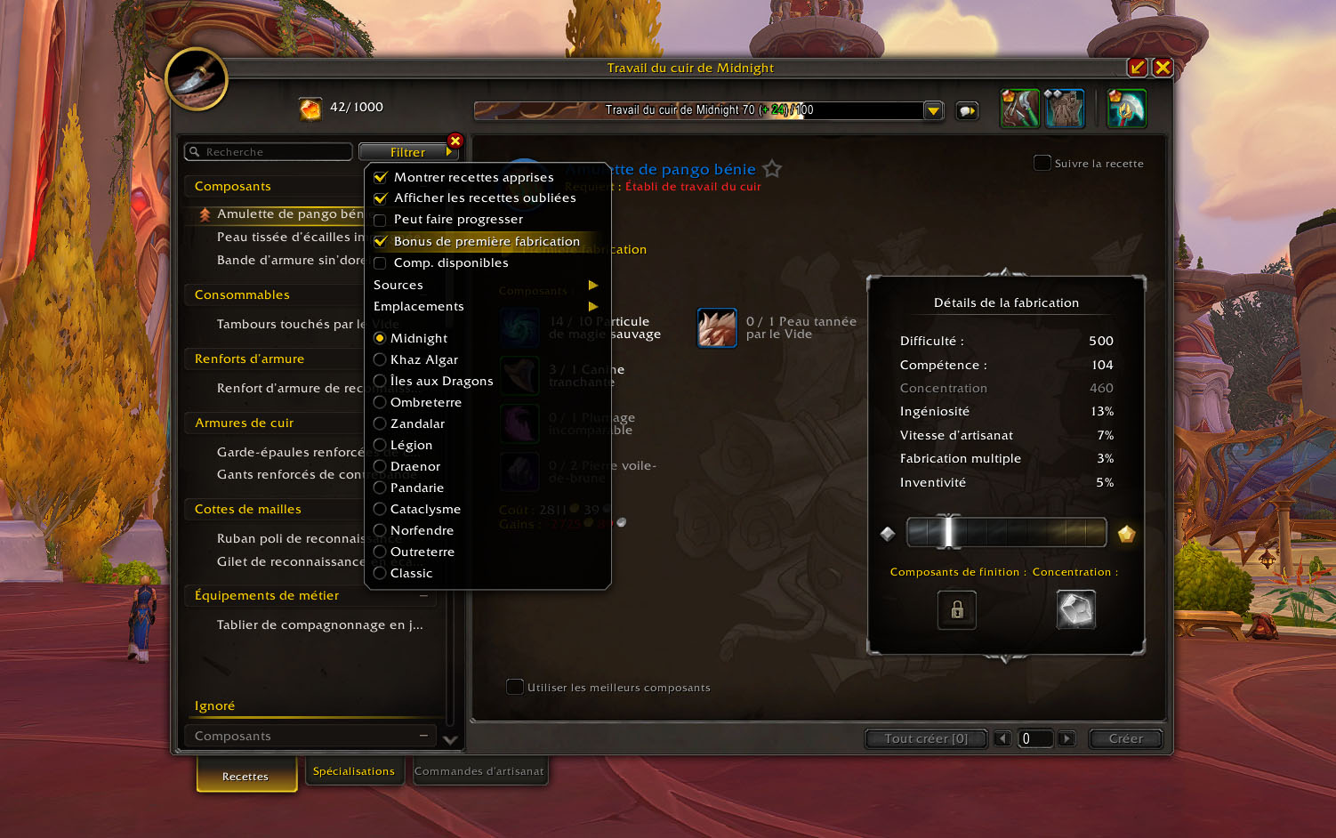 Dans Midnight, les métiers reprennent la logique introduite par Blizzard il y a deux extensions, avec un gros changement : l’Aplomb d’artisanat est désormais lié à chaque métier. Cette monnaie sert surtout à acheter des recettes (équipement, décoration), généralement pour 150 à 200 Aplomb. Ce guide liste toutes les sources pour en obtenir rapidement.