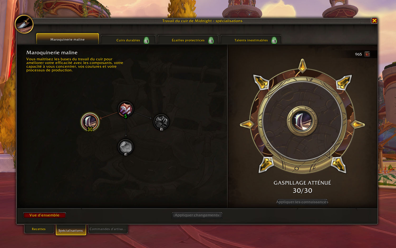 Travail du cuir de Midnight : build de départ des spécialisations